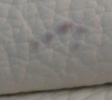 | Verfärbung von Kissen auf weissem Ledersofa |