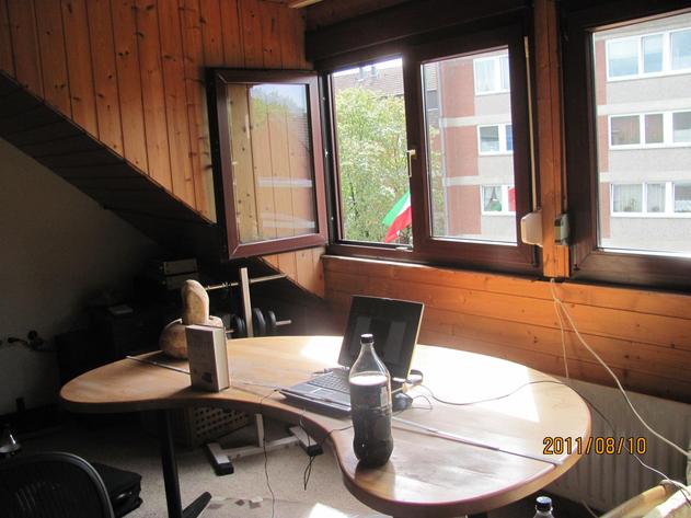 ich habe mir schon vor längerer Zeit von einem Tischler eine nierenförmige Schreibtischplatte nach eigenem Entwurf aus massiver Buche fertigen lassen. Im Rahmen eines Umzugs habe ich die Platte kürzlich abschleifen und neu lackieren lassen. Durch die abgerundete (Feng Shui optimierte ;-) Form kann ich keine (rechteckige) Standardunterlage auf dem Schreibtisch verwenden und habe mir bislang selber Unterlagen aus Kork gefertigt.