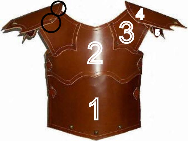 der soldner ruestung war einer meiner ersten. es ist ein einfacher schnitt allerdings aus kernleder. mann kann aus spaltleder der frundforn schneiden aber die schulterkappen werden nicht die wirkung haben wie bei kernleder. befestigt werden die schulterkappen werden mit hilfe vom zwei nieten.