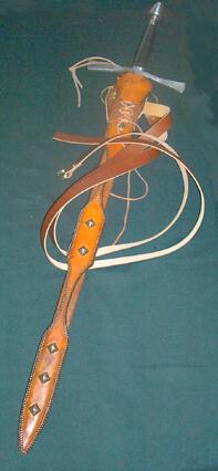 Für die Extrem-Authentiker: Ich persönlich würde es übrigens bevorzugen mein Schwert auf dem Rücken zu transportieren, wenn ich mir sicher bin, daß ich es nicht schnell gezogen haben muß. Wer mal einen Tag lang auf einem Mittelaltermarkt mit dem Schwert am Güttel rumgerannt ist, weiß wovon ich rede. Bei jedem umdrehen, immer wenn's voller wird, dauernd ist das Teil im Weg. Echt ätzend!