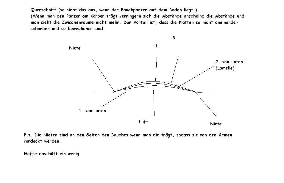 Also grob hab ich einen Brustpanzer und dann ein paar Schuppen vorm Bauch(sprich mehrere Streifen Leder)
