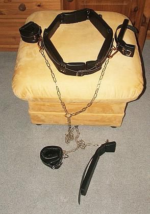 Alle Fesseln sind dick mit Schaumstoff gepolstert die mit weichem Nappaleder umhüllt sind. Die Fesseln sind dann mit Ketten miteinander verbunden, die man aber auch abmachen kann, wenn man möchte.