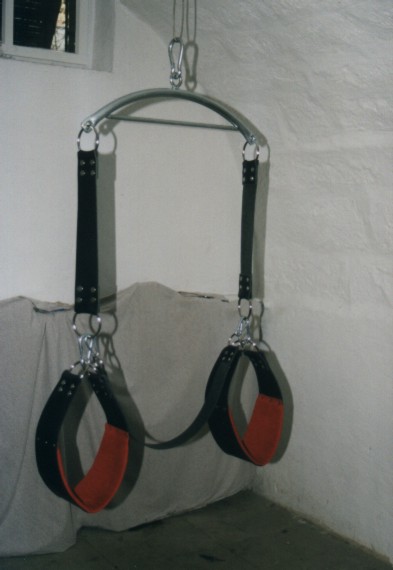bitte bietet mir das gestanzte leder für eine liebesschaukel , entsprechend der vorangegangenen beschreibung an, inkl. der nieten und schnallen, denn es wäre ja toll, wenn die schlaufen an schenkeln und händen zu öffnne wären. die ketten und deckenbefestigung besorge ich dann selbst.