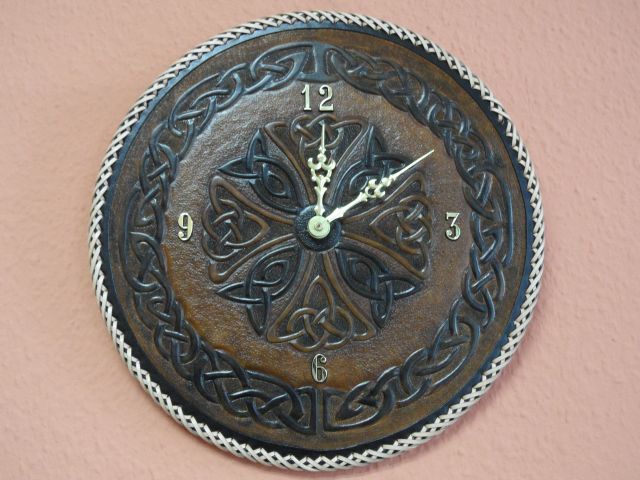 punziert und auf holz geklebt dannach umflochten, uhrwerk eingebaut und nun sagt sie mir was die stunde geschlagen hat