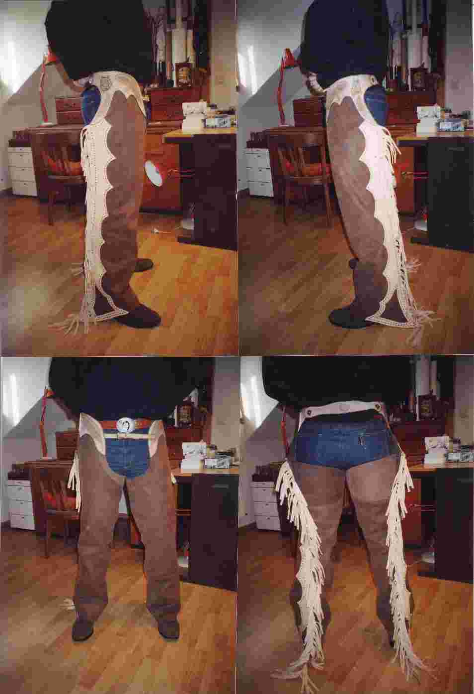 suche einen hersteller für braune lederchaps, ähnlich wie die marlboro chaps aus der werbung. das leder sollte hellbraun und glatt- und in der form wie eine shot gun chaps geschnitten sein, also vorne ziehmlich geschlossen und mit reißverschluß (keine schnallen) an den seiten. fransen hätte was, aber erstmal sehen ob mir einer helfen kann.