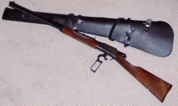 Das Bild zeigt das von mir erstellte Leder- Scabbart für mein Unterhebel- Rep.- Gewehr. Es ist aus etwa 4 mm starkem Leder. An beiden Seiten befinden sich D- Ringe gehalten mit entsprechenden Laschen. Weiterhin habe ich passende Befestigungsriemen für den Sattel geschnitten und angebracht.