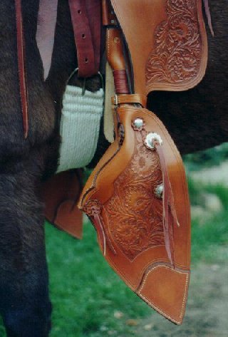 meinst Du so etwas? Für diese "Eagle-Bill-Tapaderos" brauchst Du ungefähr 1 bis 1/2 qm Blank-oder Geschirrleder in Stärke 3,5 bis 4mm.